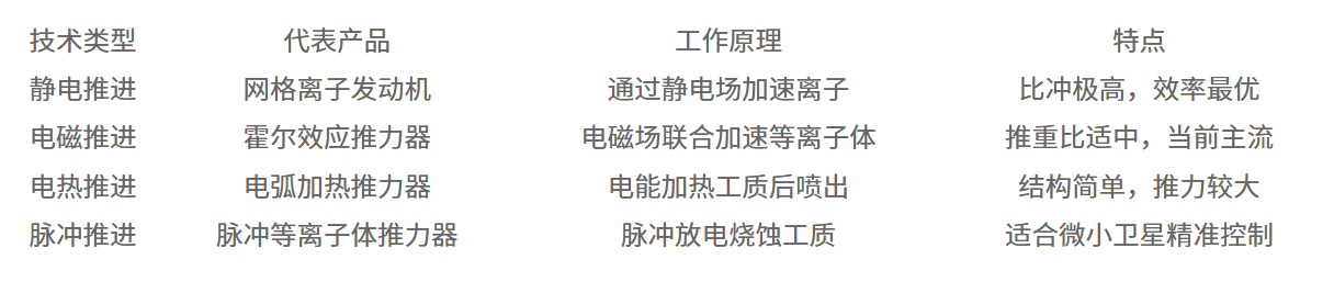 其中,霍尔效应推力器(HET)是目前应用最广泛的技术路线,尤其适合卫星的位置保持和轨道转移任务。